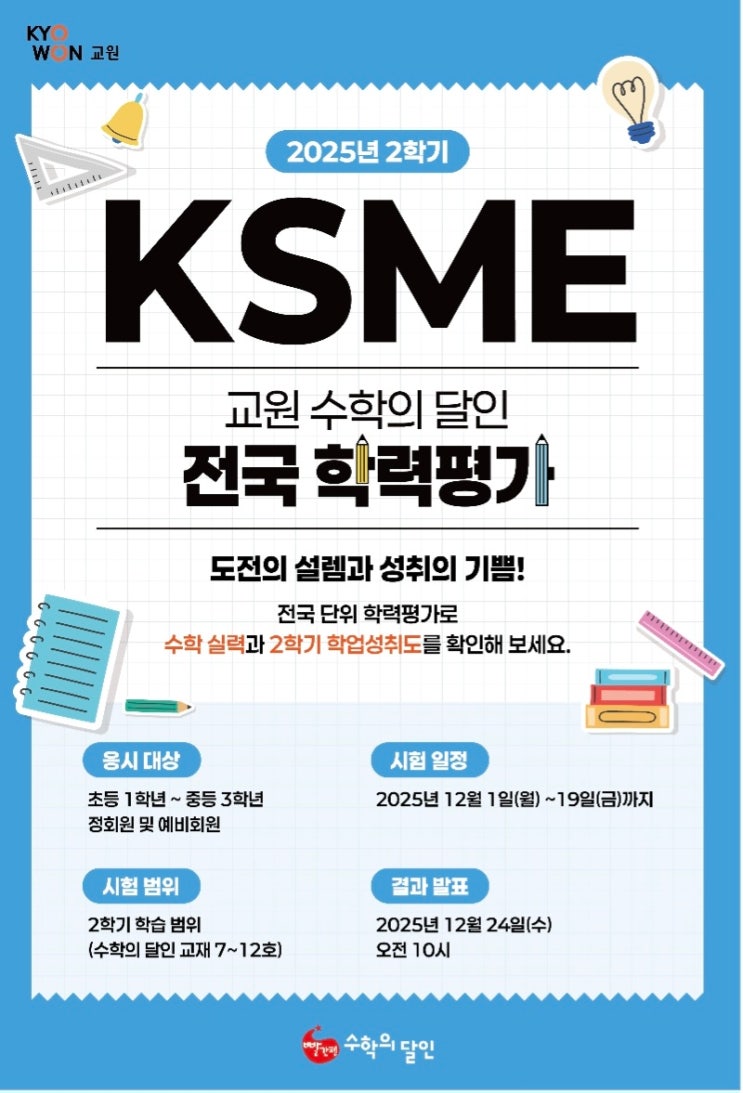 철산동 수학의 달인에서 전국 학력평가 응시하고 한 학기 점검받을 수 있는 기회를 잡으세요!! 전국학력평가에서 제공되는 분석표를 통해 한 학기 부족한 부분을 확인해 복습을 하고 새로운 학습을 자신 있게 예습할 수 있습니다. 계통 학문인 수학! 꼼꼼한 점검을 통해 수학의 기본이 차곡차곡 쌓여 갈 수 있습니다 전국학력평가 만점자에겐? 쌤이 쏘는 특별 간식 선물과 상장과 함께 KSMC 수학경시대회 수달 회원 참가비에서 추가 할인 혜택까지!!! 수학의 달인 철산 현대점 응시 날!! 2025년 12월 17일. 18일(2일간) 잠깐!! 철산동 수학의 달인 철산 현대점 이벤트 한 가지!! 예비 회원에게도 무료 응시를 제공합니다 예배 회원 응시를 원하시....... <img src="https://blogthumb.pstatic.net/MjAyNTExMjdfMTQg/MDAxNzY0MjUxMDM4MzMx.FGiH02XlXWtuY5HdZQnpSjq-INN2-BB-A_dtgHgn7wcg.qYvfb1ZgTTDdOOTyPgiOGBSBnDBxxFHdbalrCgrEzyEg.JPEG/Screenshot%A3%DF20251127%A3%DF224328%A3%DFKakaoTalk.jpg?type=s3" />