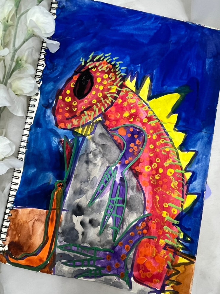 안녕하세요~! 룩에듀아트입니다! 세상을 바라보는 미술 LOOK EDU ART 2025년 8월! 룩티스트 주 2회 유치부 친구들이 도마뱀을 주제로 표현해 보았어요-! 스토리텔링 - 도마뱀 유치부 수업 Point! ✔️도마뱀의 형태를 관찰하며 작은부분까지 더 깊이 관찰해 볼 수 있도록 유도해요 ✔️동그라미 세모 네모와 같은 형태로 바라보는 시각을 통해 자유롭게 내 생각을 표현하는 경험이 쌓여요 감각적으로 표현하기 도마뱀에 색을 불어 넣어주어요 도마뱀의 색과 질감을 살려주는 채색 단계로~~ 아이들은 실제 도마뱀 사진을 보며 “이건 초록빛이야!”, “몸통 색이 빨강이야!” 라고 각자 눈에 들어온 색을 찾아 표현했어요 물감이 종....... <img src="https://blogthumb.pstatic.net/MjAyNTEwMTBfNjIg/MDAxNzYwMDUwMDQ1MTQ1.vqOeKzju7AUC3V-Owbtd9jw55FzL61S2gpOgZqBar-sg.h23fXR35G03R7EtBnBUyl3Ur3AGBl86yALjfcUDNQZ0g.JPEG/IMG%A3%DF2711.JPG?type=s3" />