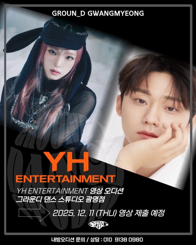 안녕하세요 #경기도댄스학원 #광명댄스학원 #전문댄스학원 그라운디 댄스학원 본사 직영 광명점입니다 ! 엔터 오디션에 관심 있으신 분들 주목해 주세요!! 이번주 목요일 12월 11일(목) 광명 댄스학원 그라운디 광명점에서 아주 특별한 오디션이 진행됩니다 ! 바로 YH 엔터테인먼트의 영상 오디션인데요 자세한 설명 함께 드릴게요! YH 엔터테인먼트는 어떤 곳인가요? 최근 사명을 변경하며 새로운 도약을 시작한 **YH 엔터테인먼트** (이전 위에화 엔터테인먼트)는 가수 최예나, 배우 이도현, 그룹 TEMPEST 등 다양한 분야에서 활약 중인 아티스트들이 소속된 기획사입니다. ‘Your Hope Here Unfolds’ 이 문장처럼, 가능성이 성장하고....... <img src="https://blogthumb.pstatic.net/MjAyNTEyMDlfMjY4/MDAxNzY1MjcxODQ2NTcw.uCOAbJ0Xw4LXaOb-9iVB5vULH_mi1xKrWydQC4f6A9Ig.iVQlAWXWPv4w5r_CSww2eCzrUdtJsizC695N8Na9YYgg.JPEG/0588A3E6%A3%ADC217%A3%AD4BFA%A3%AD836E%A3%AD57532A8CD14B.jpg?type=s3" />