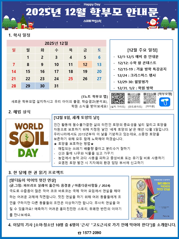 스마트해법수학 파크자이점 12월 안내문 입니다