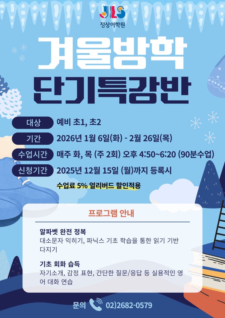 [정상어학원] 예비초1-2학년 겨울방학 단기특강반 OPEN❄