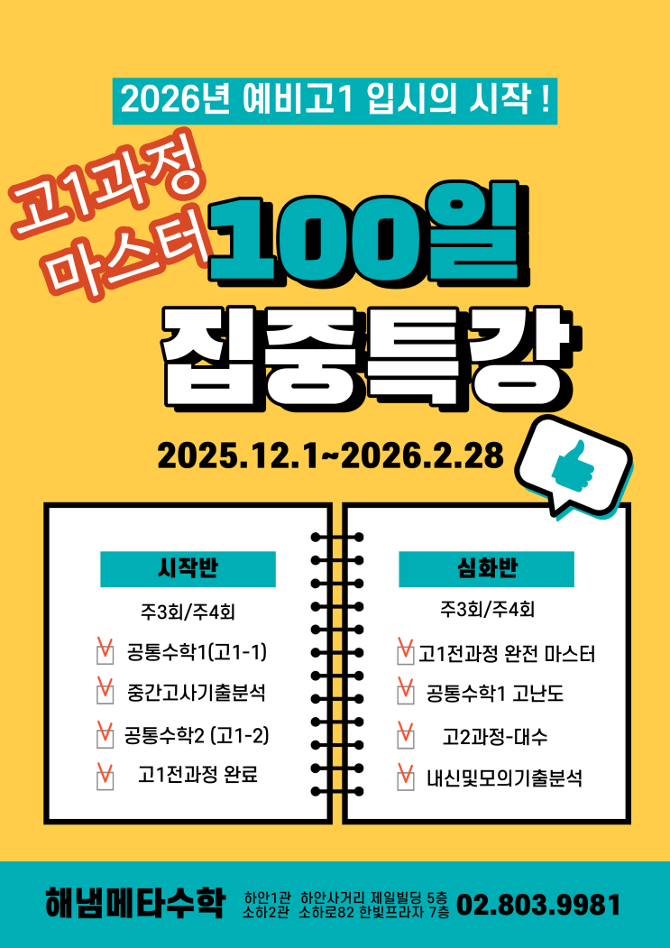 2026년 예비고1 입시의 시작 - 100일 집중특강