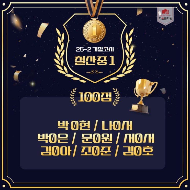 안녕하세요! [차오름 사회과학관] 입니다 ❤️ 오늘은 계속 들어도 기분 좋은 소식을 전해드리려고 해요! 바로 철산중학교 1학년 [과학] 기말고사에서 우리 차오름 과학관의 대부분의 오름이들이 눈부신 성과를 거두었다는 소식입니다 성실하게 학교, 학원 수업에 참여하고 반복적인 복습과 클리닉으로 꾸준하게 노력해준 덕분에 좋은 결과가 나올 수 있었던 것 같습니다! 묵묵히 자신의 자리에서 최선을 다한 우리 철산중1 오름이들! 누구보다 열심히 준비하고 과학 100점 만점을 위해 정말 정말 고생했던 차오름 과학관 오픈과 동시에 선생님과 공부하던 우리 철산중1 오름이!! 처음보는 학교 시험임에도, 실수하지 않고~~ 집에 가서....... <img src="https://blogthumb.pstatic.net/MjAyNTEyMDlfMjQx/MDAxNzY1MjU1NDg2ODUy.VpkN8_gin6_kFd-FdCYMiQZ9L4xGoXzk8Kw7697Hte0g.hElf3icdU_fCGWuxOo-R-y3lmHJPLf_zoNgVWFgNQekg.JPEG/%BB%E7%C8%B8%B0%FA%C7%D0%B0%FC25_12%B1%E2%B8%BB-%BA%FB%B0%A1%BF%C2%C1%DF3-%BC%BA%C0%FB%C0%DA%B6%FB_%BA%B9%BB%E7%BA%BB-_1_-003.jpg?type=s3" />