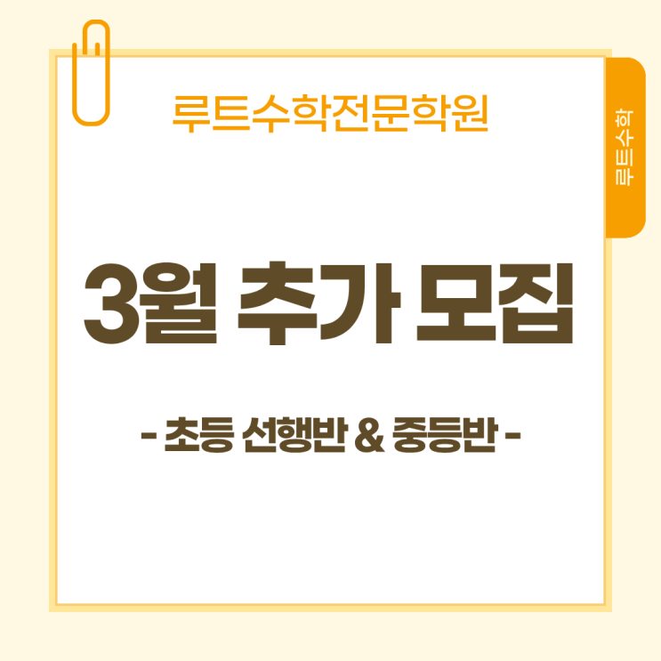 [모집] 루트수학 "초등 선행반 & 중등반" 3월 추가 모집