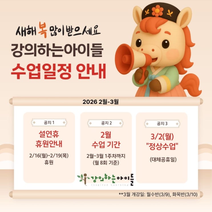 [공지] 강의하는아이들 철산캠퍼스 2-3월 수업일정 안내