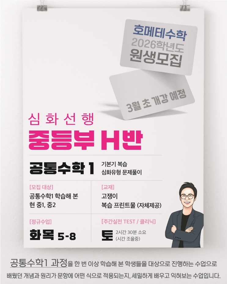 [목동 호메테 수학] 2026학년도 원생모집 ★중등부 H반(심화선행) ★중등부 M반(기초선행)