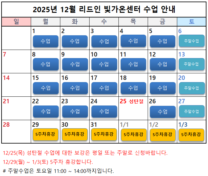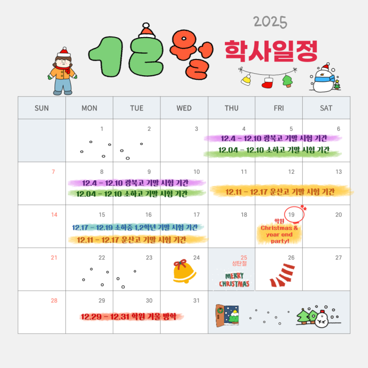 소하동 영어학원, 2025년 12월 학원 일정 안내드립니다!