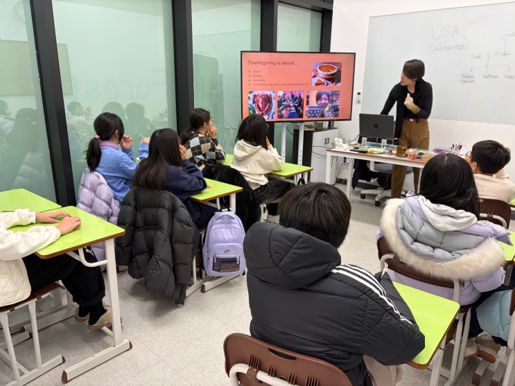안녕하세요, 리틀포레스트어학원입니다 이번 주에는 미국의 큰 명절인 Thanksgiving Day(추수감사절)를 맞아 아이들과 함께 감사의 의미를 되돌아보고 즐거운 체험 활동을 진행했어요. Thanksgiving Day란 무엇일까요? Thanksgiving Day는 미국에서 가장 중요한 명절 중 하나로, 가족들이 함께 모여 맛있는 음식을 나누며 일상 속에서 감사한 것들을 떠올리는 날이에요. 전통적으로 터키, 펌킨파이, 으깬 감자 같은 음식을 나누며 서로에게 사랑과 고마움을 표현하는 의미가 담겨 있어요. 이런 Thanksgiving의 따뜻한 의미를 아이들과도 나눠보고 싶어서 다양한 영어 활동을 함께 진행했습니다. ✏️ “I’m thankful for…” 감사 글쓰....... <img src="https://blogthumb.pstatic.net/MjAyNTEyMDVfNjQg/MDAxNzY0OTA4MjY1NDMx.LTRIE1qE2fyb5qR_s867jXGRAd64kruLGL5Ss3S7yTMg.9OuHoLRAIw892Y3cndQTSq_vxbk9qgv8qgiGig8TGlsg.JPEG/KakaoTalk_20251205_130328498.jpg?type=s3" />