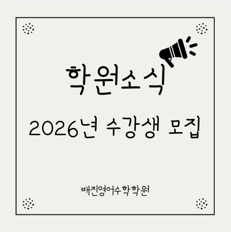 안녕하세요. 배진영어수학학원입니다. 저희 학원은 “아이를 맡겨두는 학원”이 아니라 “매일 학습을 관리해주는 학원”을 목표로 운영하고 있습니다. 초등 고학년부터 중학생 시기는 기초가 무너지기 쉽고, 한 번 놓치면 따라잡기 어려운 중요한 시기입니다. 그래서 저희는 주 5일 등원 + 매일 관리를 기본으로 수업을 진행합니다. - 주 5일, 매일매일 등원 관리- 월요일부터 금요일까지 주 5일 등원 매일 학원에 오며 ✔ 공부 리듬 형성 ✔ 학습 공백 최소화 ✔ 생활 관리까지 함께 이루어집니다. - 수업 전·후 자습 공간 완비 - 수업만 듣고 바로 귀가하지 않습니다. 수업 전·후 자습실을 자유롭게 이용하며 예습과 복습이 자연스럽게 연결되....... <img src="https://blogthumb.pstatic.net/MjAyNjAyMjFfMTQ2/MDAxNzcxNjUwNjg2Njg5.CJQmAPeYCBk4n9wrLoFpmWOQk81TxPhakub6LuMuaCkg.f9AVxgjkOMcJ8fMuQq36Z8rp7YT4k3pDo-ycJVDIBiMg.JPEG/IMG%A3%DF5727.jpg?type=s3" />