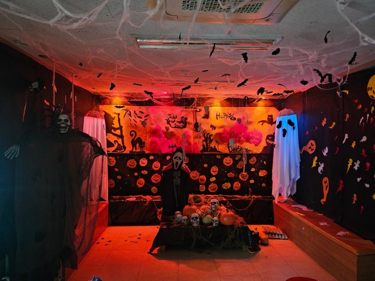 안녕하세요. 오랜만에 돌아온 팽성 영어학원 3030영어 2025년 할로윈파티입니다. 자주 올리려고 하는데 요즘 너무 바빠서 오랜만에 올리네요. 갑자기 추워진 요즘 아이들이 독감에 걸려서 걱정이 이만저만이 아닙니다. 다들 감기 조심하세요! 이번 학원 할로윈파티는 할로윈 당일인 10월 31일에 하게 되었어요. 그전에 사탕을 한봉지씩 가져오기로 했기때문에 아이들이 한봉지씩 사탕을 가져왔습니다. 물론 선생님들도 한박스씩 가져왔어요. 3일전인 화요일 저녁부터 학원을 꾸미기 시작했는데요! 제일 손이 많이 가는 거미줄 작업부터 시작했습니다. 총 이틀정도 걸려서 완성한 거미줄. 학원 제일 앞쪽에는 가랜드도 걸어주었습니다. 이번할로윈....... <img src="https://blogthumb.pstatic.net/MjAyNTExMjBfMTIy/MDAxNzYzNjIxNzg3MTg2.SdPRP2wFosi3WS2SNCZ7WNJrl6Bf0pkWXyiVDawOEdsg.Ezudp1clzASZl2An614xNkX3IeHkOPOdMilt2ZVyiZ8g.JPEG/1763618819409.jpg?type=s3" />