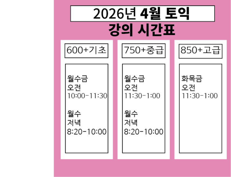 안녕하세요. 리드앤톡 영어학원입니다. 4월부터는 중 고등부 내신 시험 대비 기간이 시작됩니다. 시험이 다가올수록 더욱 집중적인 관리와 반복학습이 필요한데요, 그래서 4월부터 토요일마다 시험 대비 집중 수업을 진행합니다. 수업 일정 • 중등부 : 4/4 ~ 4/25 • 고등부 : 3/28 ~ 4/18 수업 시간 • 오전 10시 ~ 오후 12시 시험 대비 기간에는 수업 흐름이 매우 중요하기 때문에 결석 시 진도 및 관리가 이어지기 어렵습니다. 따라서 무단결석 1회 발생할 경우, 이후 토요일 수업 참여가 제한될 수 있습니다. 아이들이 끝까지 흐름을 유지하며 최상의 결과를 낼 수 있도록 하기 위한 방침이니 학부모님의 양해 부탁드립니다. 4월 한....... <img src="https://blogthumb.pstatic.net/MjAyNjAzMTlfMjcz/MDAxNzczOTA5OTk5NTQz.DVKOL71QBltFk9nlWVScSEYEnDtofnuFjVMTOnQ4XLgg.zWfi0OkcTMf-nxXoRY1EvpuFvNCx2Ht4U0LrNzWPXkgg.JPEG/KakaoTalk_20260319_174521080.jpg?type=s3" />
