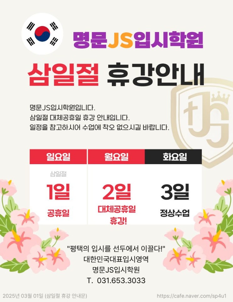 삼일절 휴강안내문.