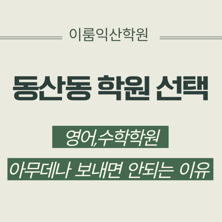 [이룸익산학원] 동산동 영어·수학학원, 이렇게 고르셔야 후회 없습니다. -‘잘 가르치는 학원’보다 중요한 선택 기준-