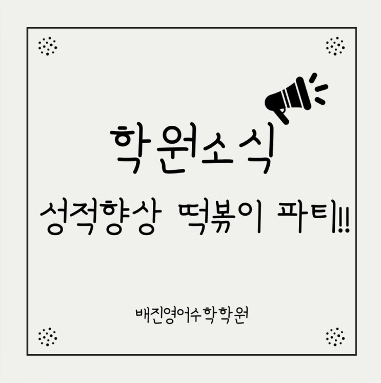 안녕하세요 배진학원입니다. 길었던 2학기 기말고사가 마무리되었습니다. 우리 아이들이 그동안 흘린 땀방울이 좋은 결실을 맺어, 이번 시험에서 정말 기분 좋은 성적표를 많이 받아왔답니다. 시험 기간 동안 꾸준히 따라와 주고, 힘들어도 포기하지 않고 끝까지 해낸 결과라 작은 보상으로 파티를 열었습니다. 파티 메뉴를 정할 때 아이들에게 물어보니 단연 1위는 엽기떡볶이였어요. 요즘 아이들의 소울푸드답죠? 그런데 주문을 하려는데 아이들이 한목소리로 덧붙이는 한마디... "선생님! 근데 너무 매운 건 못 먹으니까 꼭 '착한맛'으로 시켜주세요!!" 순간 속으로 '매운 걸 못 먹는데 왜 하필 엽떡을 먹고 싶어 할....... <img src="https://blogthumb.pstatic.net/MjAyNTEyMjlfMTAw/MDAxNzY3MDAyODA5ODg4.hwFHi5MJZ13_sWqyhxVOIwz3USRADacpMZL0YDmo7aMg.mCVuIgANKd4HdCeAXC-P8HhFyd2BnU-YlaV8rL17_PEg.JPEG/IMG%A3%DF5076.jpg?type=s3" />