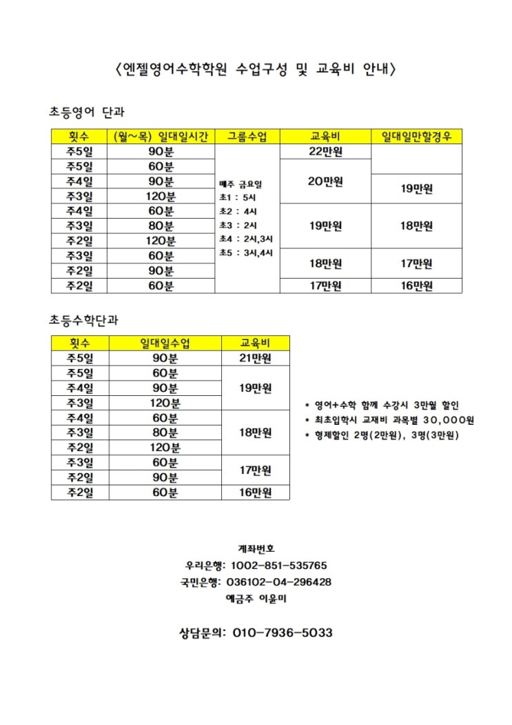 안녕하세요. 엔젤영어수학학원입니다. 2026년 3월부터 학생들의 학습 효과를 더욱 높이기 위해 영어·수학 수업 구성을 새롭게 개편합니다. 학생의 수준과 성향에 맞춘 보다 체계적인 수업으로 기초부터 심화까지 안정적인 성장을 돕겠습니다. 엔젤영어수학학원 소개 엔젤영어수학학원은 ✔ 소수정예 ✔ 개별 수준 진단 ✔ 밀착 관리 를 바탕으로 아이 한 명, 한 명의 성장을 책임지는 학원입니다. 단순히 진도를 나가는 수업이 아닌, 이해 → 반복 → 적용까지 연결되는 수업을 지향합니다. 영어 수업 구성 안내 “일대일 수업 + 그룹수업의 장점을 모두 담았습니다” 엔젤영어학원의 영어 수업은 일대일 수업과 그룹수업을 병행하여 운....... <img src="https://blogthumb.pstatic.net/MjAyNjAyMDlfMjI4/MDAxNzcwNjM4OTcyMDk5.1otQ-b7hPSNO3rghWi30n2aAxTKDLH0_aSjP6RGtKcIg.pIBe04vvmXAzSiPtrfCDLfCaXb-DQPKLHfWMTZerESUg.JPEG/900%A3%DF1770634399003.jpg?type=s3" />