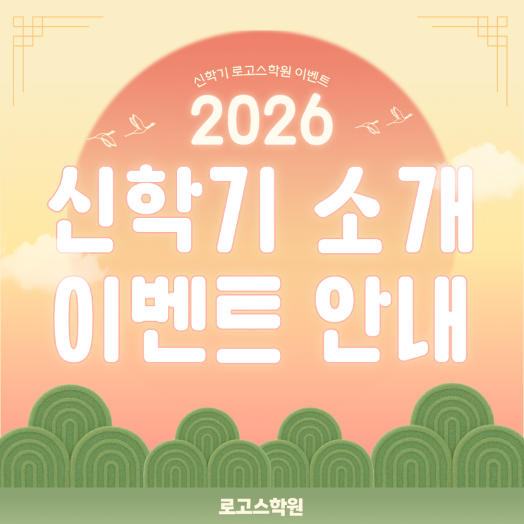 안녕하세요-! 강북 번동 수유역 근처에 위치한 초등, 중등, 고등 영어, 수학 전문학원 로고스학원입니다:) 어느덧 명절이 다가오고 있네요 :) 이번 명절에는 가족과 함께 어떤 추억을 만들어볼 계획이신가요? 따뜻하고 즐거운 명절을 보내고 나면 어느새 새학기도 성큼 다가옵니다. 로고스학원에서는 새학기를 앞두고 아이들이 한층 더 즐겁게 출발할 수 있도록 학습 준비와 함께 다양한 이벤트를 계획하고 있답니다. 오늘은 로고스학원 신학기 소개 이벤트에 대해 소개해 드리려 합니다! 신학기 이벤트인 만큼 1년에 단 한 번만 진행되는 특별한 할인 이벤트가 돌아왔습니다. 2월 10일부터 3월 10일까지 4주동안 친구 소개를 해주시는 재원생은....... <img src="https://blogthumb.pstatic.net/MjAyNjAyMDlfMjQ5/MDAxNzcwNjA4NzEwMDU5.FadBjq8Gbm2rEYfpFz2d3hWofLEocYor8ExLm6a2fzog.W_P6HU7j1bdOKau7u4D3jfXjKQEZdMfsdj_gErqog1kg.PNG/%C1%A6%B8%F1%C0%BB_%C0%D4%B7%C2%C7%D8%C1%D6%BC%BC%BF%E4._%2827%29.png?type=s3" />