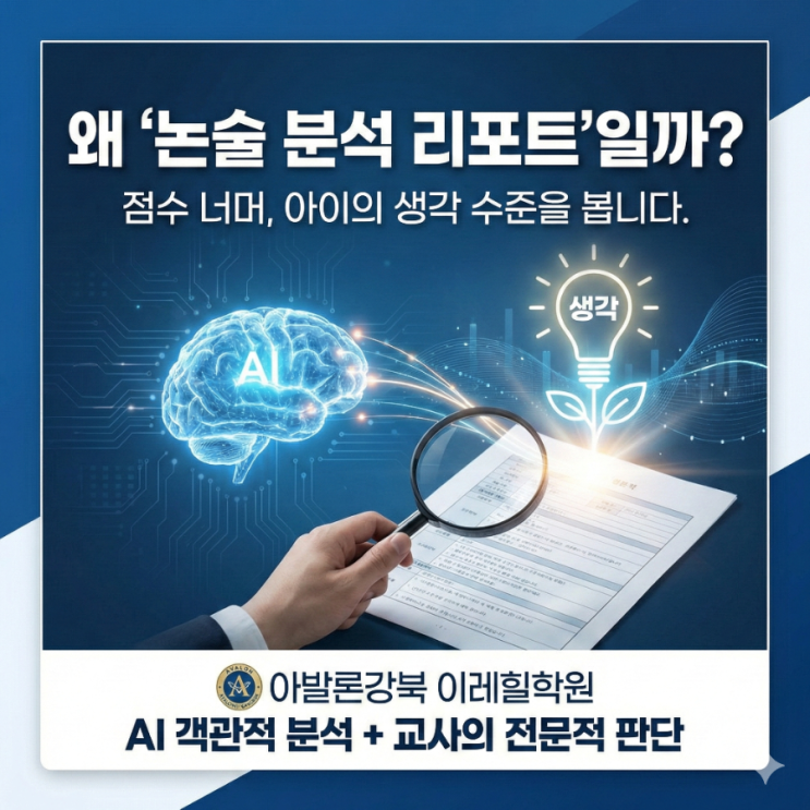 왜 아발론강북 이레힐학원에서는 ‘AI 논술 분석 리포트’로 학생을 분석할까요? ☆ 강북구미아동수유동삼양동송중동송천동번동영어수학논술전문학원 아발론강북캠퍼스