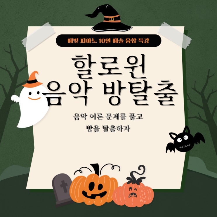 안녕하세요, 수유동 피아노 예빛이에요. 10월은 할로윈데이가 있어 더욱 즐겁고 특별한 달이죠! 아이들과 특별한 할로윈을 보내고 싶어 이번 달 예술융합 특강으로 ‘할로윈달 특집 – 음악이론 방탈출하기’ 활동을 준비했어요. 이번 특강은 아이들이 지금까지 배웠던 음악이론을 직접 활용해 문제를 풀어보는 방식으로 구성했어요. 놀이처럼 즐기지만, 자연스럽게 배운 내용을 다시 확인할 수 있는 시간이라 아이들의 반응도 정말 뜨거웠답니다. 첫 번째 방에 들어서자마자 아이들의 눈빛이 반짝!✨ 문제를 읽는 순간 “선생님, 이거 지난 시간에 했던 거예요!” “리듬이잖아! 내가 해볼게!” 하며 자신 있게 문제를 풀기 시작했어요....... <img src="https://blogthumb.pstatic.net/MjAyNTExMjNfMjY2/MDAxNzYzODMzMDkwMTIx.azFYY4eSo0-rLGLKmCN4ZkVwRPR-MHsIAPKfxO-aOs0g.ydTlrq-G-HQbvk0u59C5BzoJsH56XgIpsnl1CMfx7dog.JPEG/KakaoTalk_20251123_013115609.jpg?type=s3" />