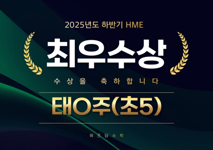 안녕하세요. 위즈덤수학입니다 오늘은 2025년도 하반기 수학경시대회 수상 결과를 알려드리겠습니다. ⭐️최우수상 7명, 우수상 3명, 장려상 3명⭐️ 모두 수상을 축하합니다 멋진 우리 위즈덤 아이들 2026년에도 힘내서 수학 공부해보자! 선생님은 너희들이 너무 자랑스러워❤️ <img src="https://blogthumb.pstatic.net/MjAyNjAyMDZfMTc0/MDAxNzcwMzA1MjE3NDY4.yiqo3nDCYmPpU30-vL2u6vpaHsT5MmBcGuqgChzyQgQg.YZvSftjipMKieFUoMwwPBAlf61GVNgWqbuZNIWyLtWMg.JPEG/%C1%A6%B8%F1%C0%BB%A3%AD%C0%D4%B7%C2%C7%D8%C1%D6%BC%BC%BF%E4%A3%DF%A3%AD001%A3%A83%A3%A9.jpg?type=s3" />