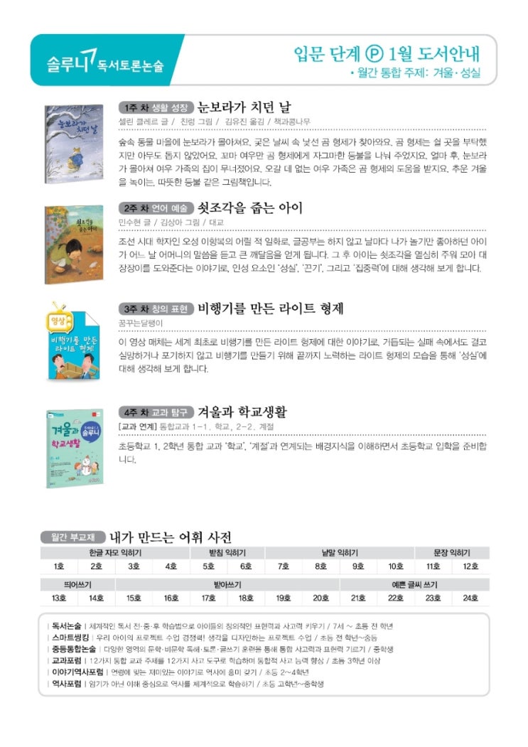 솔루니 1월 독서논술 <입문단계~초등6학년>