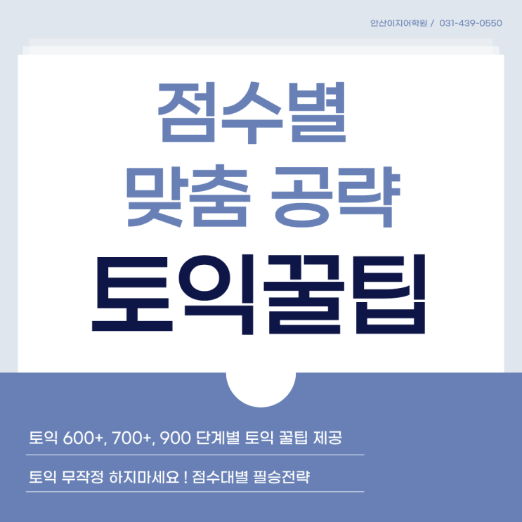 안녕하세요. 안산 토익학원, 안산 오픽, 안산 토스 학원 수강생들의 결과와 후기로 증명하는, 안산이지어학원입니다. 오늘은 토익 점수가 제자리걸음인 분들을 위해 점수대별 맞춤 공략법과 함께, 이번 4월에만 만날 수 있는 안산토익, 안산이지어학원만의 특별한 이벤트를 소개해 드리려고 합니다. 점수대 별 맞춤 공략법 (핵심요약) 500~600점 [입문] 문제를 풀지 말고 패턴을 외워라 이 점수대는 실력보다 패턴 인식이 훨씬 중요합니다. 예를 들어 Part5 be + 형용사 + to V → 거의 80% 확률로 정답 예를 들어 말씀드리면, be likely to be able to be required to be willing to 이 패턴만 외워도 Part5 3~4문제는 그냥 맞습니다....... <img src="https://blogthumb.pstatic.net/MjAyNjAzMTFfMjgw/MDAxNzczMjIyODg1OTIw._I8I6ACrueiD2_seD-NuzVWZjRkZqYvyY71jUf9GOXQg.TKC2bZLBhSkXi1lfnXzJ9Q0D3qaatfU1K5PO8L8hB2Ag.PNG/1.png?type=s3" />