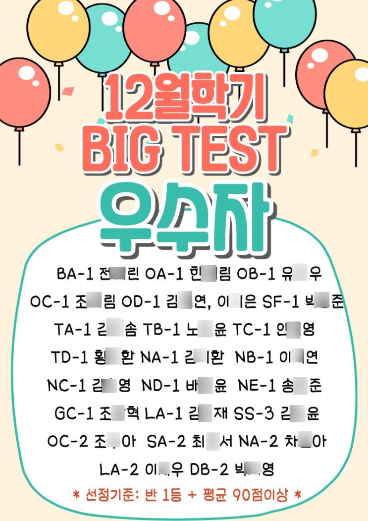 보스턴어학원 초지캠퍼스 12-2월 우수자시상!