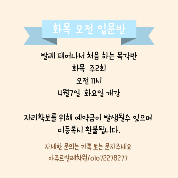 [안산성인발레/안산중앙동성인발레/아쥬르발레]4월 화목 오전 입문반