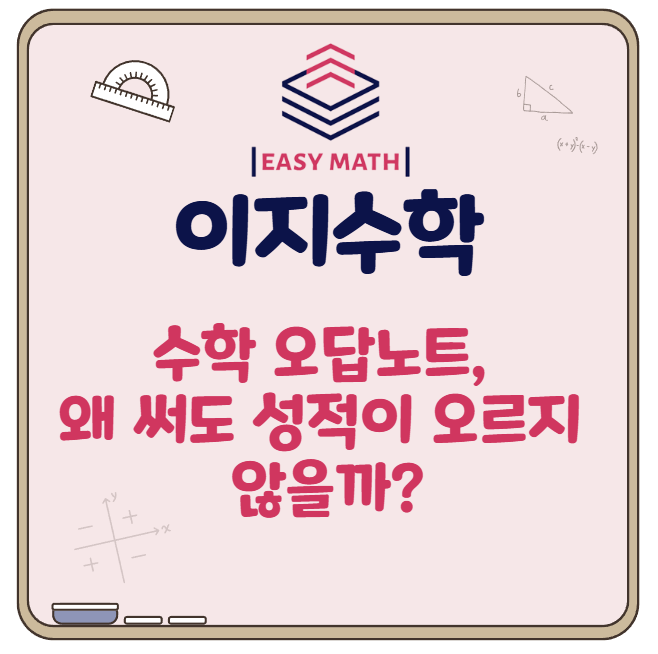 안녕하세요. 원곡동수학학원 이지수학입니다. 많은 학생들이 성실하게 오답노트를 쓰고 있음에도 불구하고 기대만큼 성적이 오르지 않아 답답함을 느끼곤 합니다. 분명 노력은 하고 있는데 결과가 따라오지 않는다면, 그 이유를 한 번쯤 차분히 점검해볼 필요가 있습니다. 수학 오답노트가 효과를 보지 못하는 가장 큰 이유는 ‘틀린 문제를 정리하는 데서 끝나기’ 때문입니다. 단순히 문제를 다시 적고 정답을 옮겨 적는 방식은 학습의 핵심인 사고 과정을 되짚는 데까지 이어지지 않습니다. 왜 틀렸는지, 어느 개념에서 막혔는지에 대한 분석이 빠진 오답 정리는 결국 같은 실수를 반복하게 만듭니다. 또 다른 원인은 오답을 개인의 실력 문제....... <img src="https://blogthumb.pstatic.net/MjAyNjAxMTVfMjk4/MDAxNzY4NDY2MTc3MzAy.A1GsMSjFxGo9q1rCUHRymUxUwcJ1AMzma-WkVX7OYfEg.Zw1VJDC_w2xcNNjR3I-OGE2X0cHuD0XESx15EV1y22Mg.PNG/image.png?type=s3" />