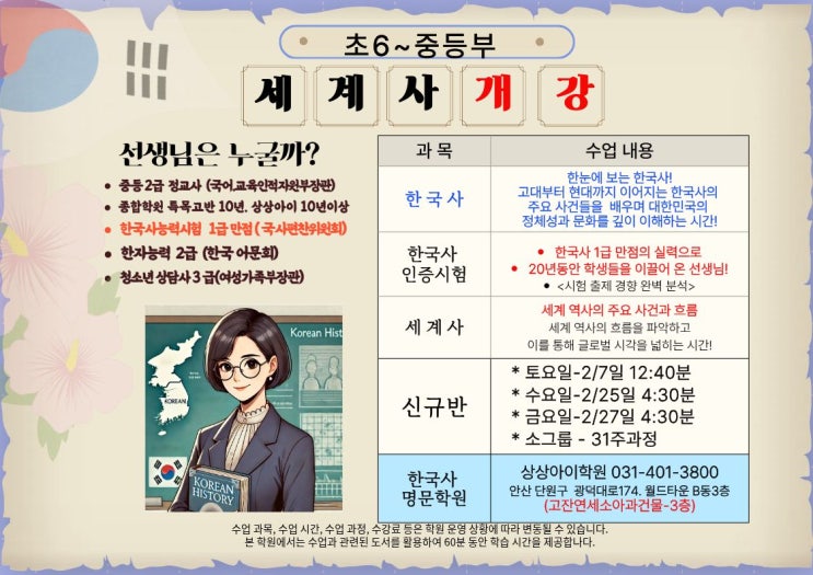 2026.신학기 세계사, 한국사 개강