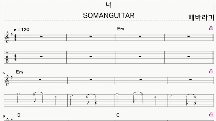 [Em Key] 해바라기 - 너 (일렉) 악보 행신동 실용음악학원 소만마을 기타교습소