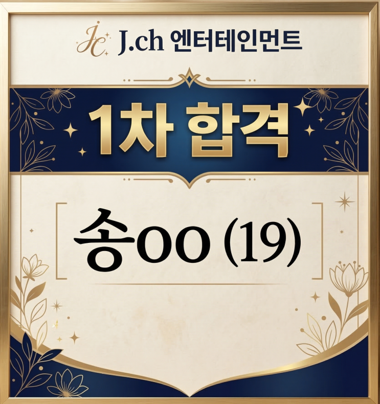 연합 오디션에 참가했던 오디션반의 송OO 학생이 J.CH 엔터테인먼트에 1차 합격 했습니다. 원래 실용음악과 대학을 목표로 보컬을 배우다가 아이돌에 관심이 생겨서 댄스도 배우면서 꿈을 키우고 있는데 댄스 배운지 2달만에 좋은 소식이 있어서 너무 기쁩니다. 최종합격까지 원흥 오늘 피아노보컬음악학원에서 함께 하겠습니다.^^ <img src="https://blogthumb.pstatic.net/MjAyNjAzMTNfMjg3/MDAxNzczMzgyMDgwODIw.KBUU5WLPg0SJB53lBxLweqOaPdWtqf4Ph08iNyTmTakg.J-2gKa3IeCRhq2fgaudwNTZqPeMESN4QrxMkMVnPYnEg.PNG/Gemini_Generated_Image_xvxwxpxvxwxpxvxw.png?type=s3" />