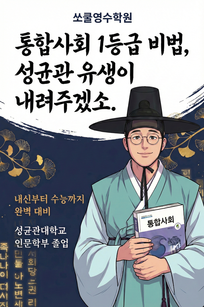 ★ 예비고1 통합사회 개강 ★ 3월 새 학기를 앞두고, 통합사회 개강 소식을 알려드립니다! 통합사회의 내신 이수 학점은 국영수와 유사한 수준의 단위로 편성되어 있어, 비중이 결코 가볍지 않습니다! 여기에 더해, 2028학년도부터는 수능에서도 전 학생 필수 응시 과목이 됩니다. 더 이상 선택이 아니에요. 피할 수 없다면, 미리 잘 준비하는 것이 최선입니다. 쏘쿨에서는 성균관대학교 인문학부 출신 선생님이 직접 수업을 진행합니다. 개념부터 실전 적용까지, 내신과 수능을 함께 준비할 수 있는 커리큘럼으로 진행하니, 통합사회에서 1등급을 놓치지 않고 싶은 학생들은 쏘쿨과 함께 해요! 수업 일정 (3월 5일 개강) 목: 오후 7:00~9:3....... <img src="https://blogthumb.pstatic.net/MjAyNjAyMjJfMTI2/MDAxNzcxNjk0MDE2NzQ0.-zxKf7q_hDgjIWjimgBZpEaGZyaKQtx9BpCgNPboWewg.tgdw-nJT3cdhtucsGqvnyZdNs-xjwROawsGFnGgDBDsg.PNG/image.png?type=s3" />