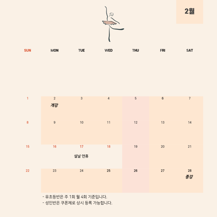 [더발라레필 석촌점] 2월 수업 일정
