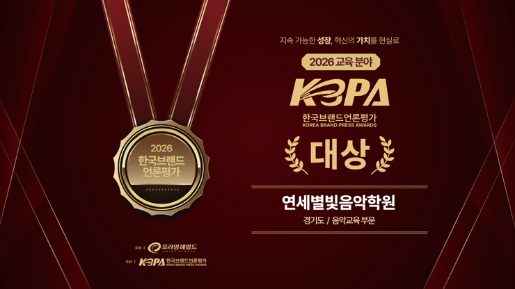 안녕하세요 아이들의 꿈이 별처럼 빛나는 곳, 연세별빛음악학원입니다. 오늘은 저희 학원을 믿고 소중한 아이들을 맡겨주시는 학부모님들 덕분에 얻은 아주 기쁘고 영광스러운 소식을 전해드리려고 합니다. 연세별빛음악학원이 **<2026 제3회 KBPA 한국브랜드언론평가>**에서 경기도 **고양시 전체 음악교육 부문 '대상'**을 수상하게 되었습니다! 2026 KBPA 브랜드 대상이란? 이 상은 언론 매체와 전문가들이 서비스의 질, 교육의 전문성, 그리고 학부모님들의 신뢰도를 엄격하게 심사하여 각 지역과 분야를 대표하는 최고의 브랜드를 선정하는 공신력 있는 시상식입니다. 저희 연세별빛음악학원이 이번에 고....... <img src="https://blogthumb.pstatic.net/MjAyNjAyMjhfMjM2/MDAxNzcyMjI5MDE0MzMx.dMlgC1eS_He3eThG4dTAH3hCgUq7yvkjwztmyKGEP9cg.YifJZ-vXYYwQYKOlmmuCk3qaFtz1lw85CyafMO0RPVog.PNG/IMG%A3%DF7542.PNG?type=s3" />