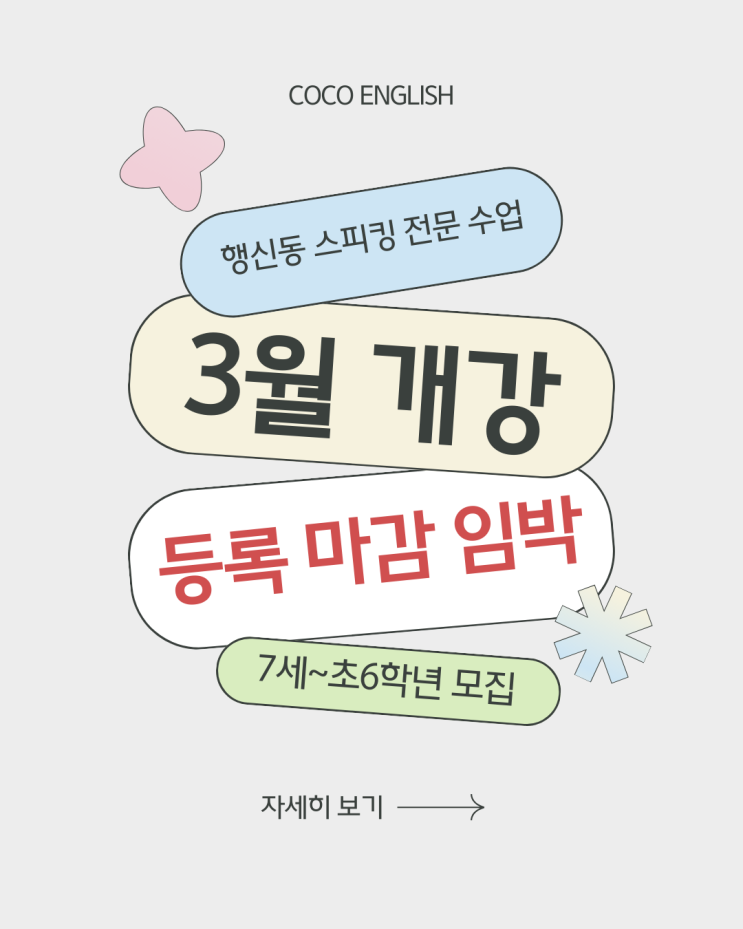 2026년 3월 개강 등록 마감 임박 | 행신동 스피킹 전문 초등영어 | 코코잉글리쉬 영어교습소