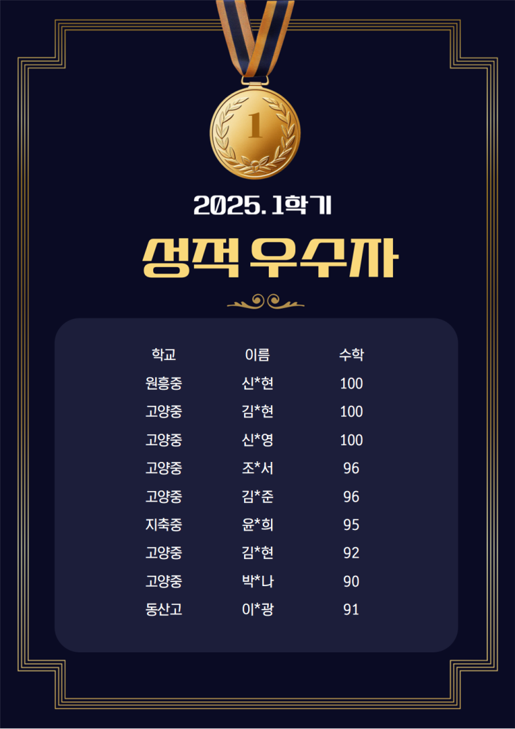 [삼송원흥중학교] 25년도에 열심히 공부한 학생들 모두 칭찬합니다!!
