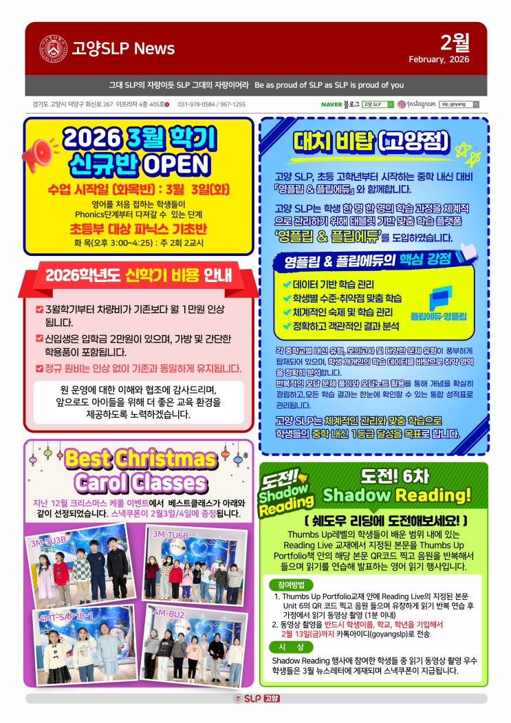 [삼송 영어학원] 2026년 시간표 안내입니다.