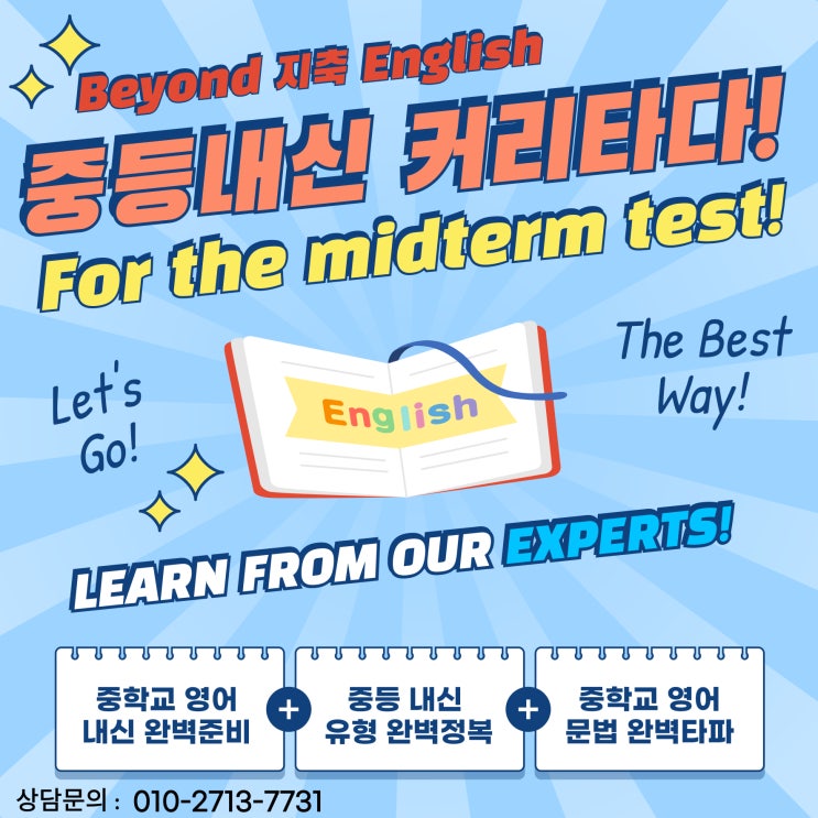 안녕하세요! 말하며 배우는 결과가 다른 영어, Beyond English 지축캠퍼스입니다 3월 새학기를 맞이하여 비욘드 지축캠퍼스와 함께 중학교 영어 내신을 완벽하게 준비할 예비 중학생 및 현재 중학교 재학중인 학생들을 모집합니다! 비욘드 지축 캠퍼스 어학원에서는 어떻게 중학교 내신을 준비할까요? 비욘드 정규과정을 처음부터 차근차근 공부해온 학생들은 내신준비를 따로 하지 않아도 JET 영어 공인인증시험, 중등내신의 좋은 결과를 만들어 내고 있습니다! 그러나 해당 과정을 거치지 않은 중등 학생들을 위한 특별한 비욘드 커리큘럼이 있습니다~^^ 내신 시험에서 높은 점수를 받으려면 가장 중요한 것은 역시 내신 시험 유형에 익숙해지....... <img src="https://blogthumb.pstatic.net/MjAyNjAzMTFfMTQ2/MDAxNzczMjAyOTk5MDc2.-zkbxkkQQco3VH5KguvzMi51e47hMBYTWVJPmKDCOVog.YcdRn3moejz9NIjFXTG3jzB7YIY1VJOL_i9juBzuYFMg.JPEG/%C1%A6%B8%F1%C0%BB-%C0%D4%B7%C2%C7%D8%C1%D6%BC%BC%BF%E4_-001_%2838%29.jpg?type=s3" />