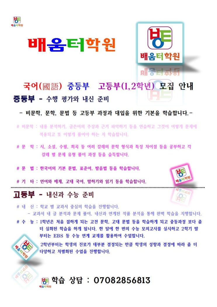 국어과 중등부 고등부 모집 안내