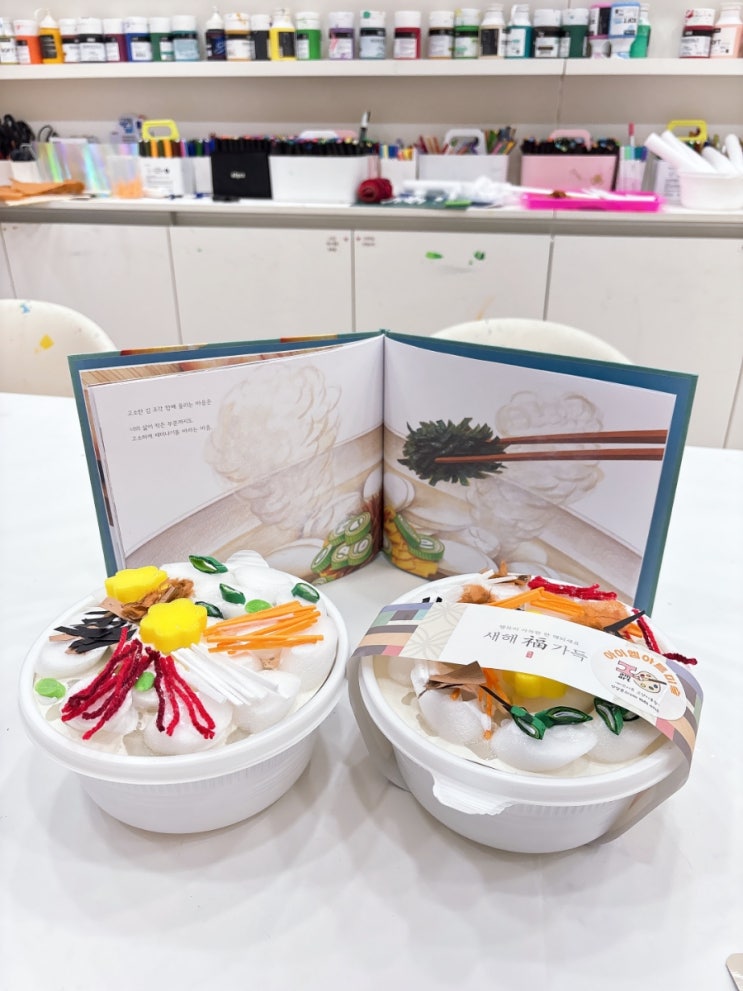 안녕하세요^-^ 이번주 설날을 맞이하여, '떡국의 마음' 이라는 그림책미술 수업으로 명절수업을 하였습니다 다양한 재료를 이용하여 조형수업도 하고, 맛있는 떡국도 끊여먹어요~ "선생님! 잘 만들면, 진짜 먹을 수 있는 떡국 줄거예요?? ㅋㅋㅋㅋㅋㅋ 단순히 떡국모형을 만드는 것이 아닌 새해 우리가 떡국을 먹는 의미에 대해 알아보는 시간을 갖었습니다^-^ 맛있게 끊인 육수위에 맛있는 떡국떡 쏙쏙! 지단 만들어주기☝️ 계란,파,소고기,당근,실고추,김 진짜~~맛있겠다ㅋㅋ 진짜보다 더~진짜같은 미니?어쳐 떡국 마지막 완성본에 "레진"까....... <img src="https://blogthumb.pstatic.net/MjAyNjAyMTlfMjAy/MDAxNzcxNDMzODk3Mjc2.Z1yfkbFhzSinIIbZFv4Or8PFYswh83xm8e4QlfAcYUcg.k0TgCDxqMehi0bwfDjAwpB6-CdKSbhNqIClDCYP0i1Ag.JPEG/900%A3%DF1770720478299.jpg?type=s3" />