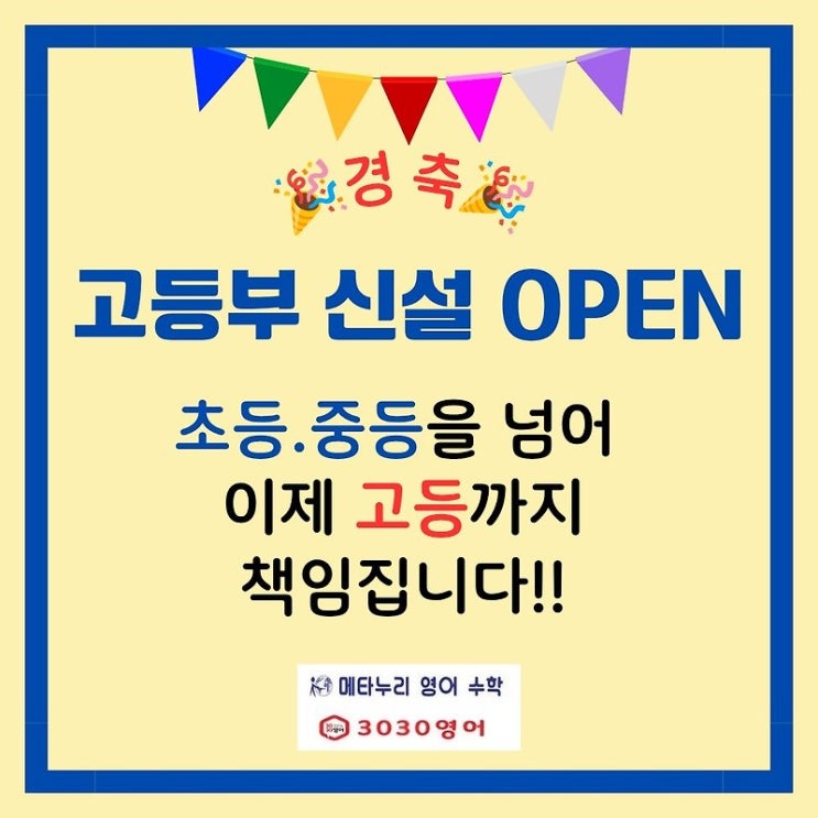 안녕하세요. 메타누리영수학원 입니다. 저희 학원에서는 그동안 초중등 과정을 통해 차근차근 실력을 쌓아온 우리 아이들이 고등과정까지 안정적으로 이어갈 수 있도록 고등부를 정식 신설하여 3월부터 운영하게 되었습니다. 고등 과정은 중등과는 전혀 다른 학습전략이 필요합니다. 개념 이해를 넘어 심화 사고력, 내신 관리, 수능대비까지 보다 체계적이고 전략적인 수업이 이루어 져야 합니다. 메타누리 고등부는 내신 중심의 학교 맞춤 수업 수능형 사고력 문제 대비 훈련 소수 정예 관리형 수업 개별학습 진단 및 피드백 강화를 중심으로 운영 됩니다. 아이들이 학원을 옮기지 않고 익숙한 환경에서 믿고 맡겨주신 선생님들과 고등 과정까지....... <img src="https://blogthumb.pstatic.net/MjAyNjAzMjBfMTI4/MDAxNzczOTgwODkwNDk2.V4We2MQac1tP6bNLy8OiQ_Iv8e1WEIZTNPzz9Tr13oEg.RyAZZLdDZUX8U7Ep1Vft82Y2mwI9GNrg-roSh0GCk4wg.JPEG/KakaoTalk_20260320_132731830.jpg?type=s3" />
