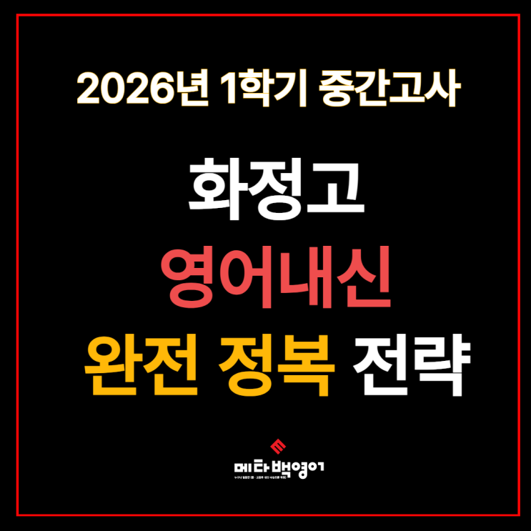 안녕하세요. 메타백영어학원입니다. 화정고 1학기 중간고사 지필평가 범위가 확정되어 안내드립니다. 1학년 영어 1학기 1차 정기시험 안내 답안 작성 시 유의사항 ▪ 시간 안배: 먼저 끝까지 풀고, 추후 미흡한 문항에 시간 투자 ▪ 논술형 작성 시 유의사항 - ① 답 앞에 반드시 번호 및 기호 표기 — 미표기 시 점수 부여 불가 - ② 철자를 읽을 수 있게 글씨를 바르게 쓸 것 — 해독 불가 시 0점 처리 - ③ <조건>을 지키지 않으면 의미가 맞더라도 0점 처리 2학년 영어Ⅰ 1학기 1차 정기시험안내 1차 정기시험 범위 (2026.3.19. 기준) ▪ 확정 범위: 교과서 1, 2과 / 올림포스 3, 8, 10과 ▪ 추가 범위 발생 가능 — 최종 시....... <img src="https://blogthumb.pstatic.net/MjAyNjAzMzFfODkg/MDAxNzc0OTMwMjc4Njg0.kAQv_1eRcFr9rxVKAYBVjPZqQd1e0lEwwuOcyaOUpIQg.1ar0gEQUUV6r-l7__7aGaHseoui_bnR8Cb2QP3Sp8bwg.PNG/%C1%A6%B8%F1%C0%BB_%C0%D4%B7%C2%C7%CF%BC%BC%BF%E4_%282%29.png?type=s3" />