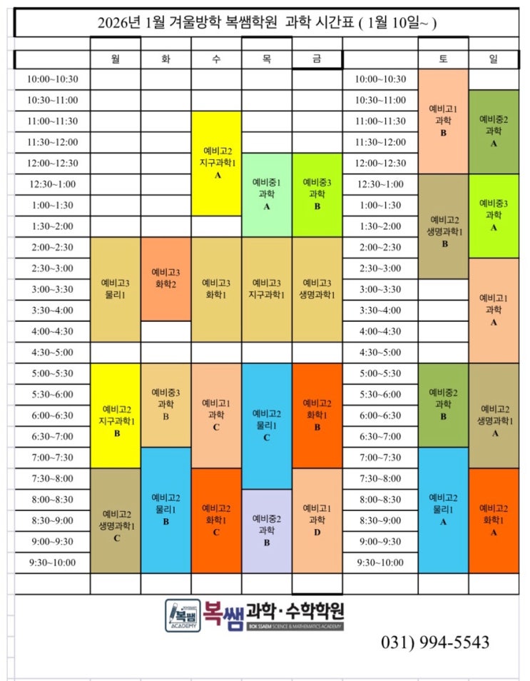 [이은재수학학원시간표] 2026년 3월부터 이은재수학학원 내신대비시간표 입니다.