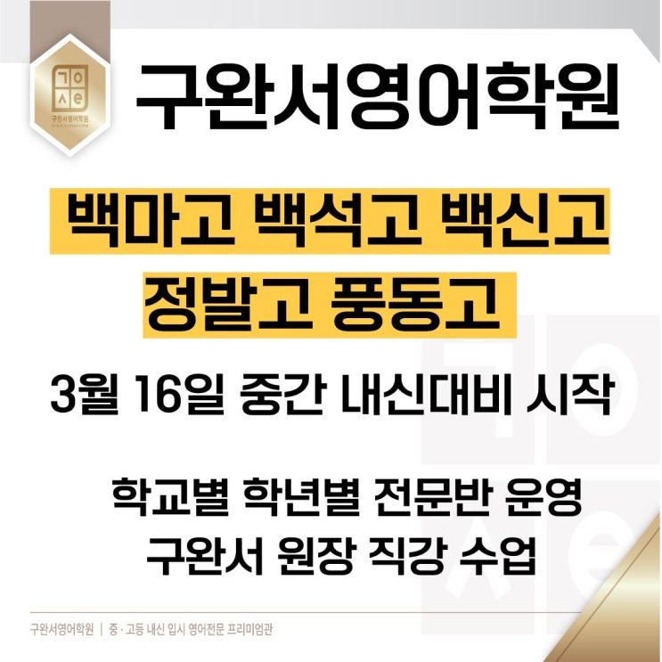 일산백마영어학원-구완서영어학원-3월 16일 내신대비 시작 안내 입니다. 학생관리에 최선을 다합니다!(백석 백마 백신 풍동 정발고 전문반운영)