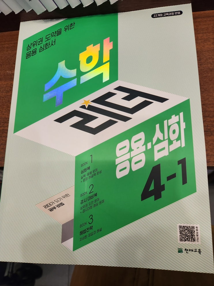 초등)) 보통 디딤돌 기본응용으로 선행또는 현행공부를 진행하시고 준심화 또는 심화 문제집을 한권 끼워넣으시죠. 최상위 s풀기는 어정쩡하고 그렇다고 안풀리자니 찝찝하고. 그럴때 이 문제집 괜찮을것 같네요. 개인적으로 학생일때부터 천재교육 출판사 문제집은 반드시 한권 끼워넣었어요. ( 기출문제를 잘 찝어내요 그리고 신선하고 날카로운 문제들이 많아서 좋아했어요 ㅎㅎ) 그래서 지금도 천재교육 출판사문제집은 유심히 보게되네요. 아이들마다 최상위문제집을 푼다는게 자연스럽지 않고 거부감으로 받아들이는 아이들이 있어요. 수학은 단원별로 중요한 문제들이 정해져있어서 반드시 최상위문제로 심화를 다져야 한다는 법칙은....... <img src="https://blogthumb.pstatic.net/MjAyNTEyMDhfMjQ4/MDAxNzY1MTk1NTI2ODU2.kDE-FerL2r0-3GM8KuygRjiIEJO_FYgwoQFSOuG55uMg.wvTyyGN4IitEcz1MdLWqhZRosQhuO_xmo2pFTf4B4MAg.JPEG/IMG%A3%DF2030.JPG?type=s3" />