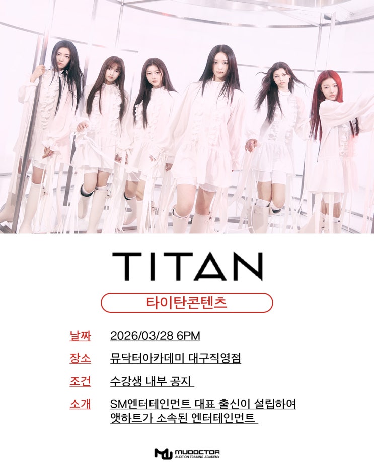 대구 아이돌 지망생 여러분, 안녕하세요 3월이 되면서 새 학기와 함께 분위기도 조금씩 바뀌고 있죠. 아이돌 데뷔를 목표로 한다면 지금 시기의 아이돌 오디션 일정도 꼭 체크해야 합니다 ✨ 뮤닥터 대구점에서는 이번 달에도 여러 기획사가 직접 방문하는 내방오디션 일정이 예정되어 있어요. 대구에서 준비 중인 아이돌 지망생이라면 3월 라인업, 미리 확인해두세요 3월 7일 내방오디션 웨이크원 케플러 제로베이스원 이즈나 조유리 등 소속 3월 11일 내방오디션 YH엔터테인먼트 최예나 이도현 템페스트 등 다수 소속 3월 11일 내방오디션 누아 엔터테인먼트 조우안신 장지아하오 수애 박해일 등 다수 소속 3월 12일 내방오디션 레토....... <img src="https://blogthumb.pstatic.net/MjAyNjAyMjdfMTAz/MDAxNzcyMTc2NTkyODQy.QED-THZEduLCDylqzYFunOGp8cMsQdTkXxtmFVavsnkg.APdyLocZ5BZMqQflUsEt8POcNkjw8YbWsKrelFle-fMg.JPEG/3%BF%F9_%C5%B8%C0%CC%C5%BA.jpg?type=s3" />