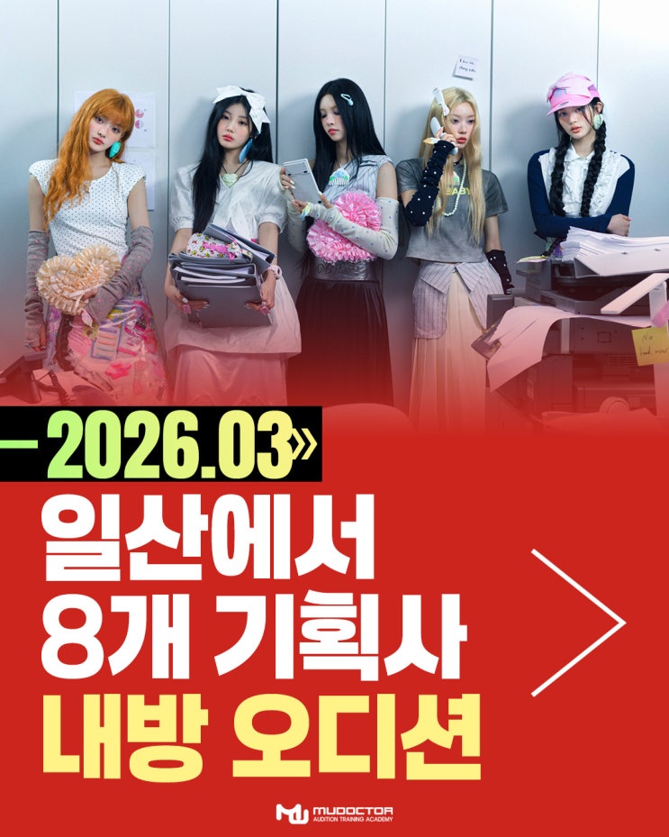 일산·고양·파주 지역 아이돌 지망생 여러분 3월이 되면서 날씨도, 분위기도 조금씩 달라지고 있죠 새 학기와 함께 아이돌 오디션 준비도 다시 점검할 타이밍입니다 뮤닥터 일산점에서는 이번 달에도 기획사 방문 내방오디션 일정이 준비되어 있어요 ✨ 일산에서 아이돌을 꿈꾸고 있다면 3월 일정은 꼭 확인해보세요! 3월 5일 내방오디션 S2엔터테인먼트 키스오브라이프 소속 3월 6일 내방오디션 KQ엔터테인먼트 에이티즈 싸이커스 소향 등 소속 3월 10일 내방오디션 이닛 엔터테인먼트 <더 딴따라> TOP4, 도드리 등 소속 3월 11일 내방오디션 비공개 기획사 3월 13일 내방오디션 타이탄콘텐츠 뮤닥터 출신 앳하트 봄 소속 3월 17일 내....... <img src="https://blogthumb.pstatic.net/MjAyNjAyMjZfMTk5/MDAxNzcyMDg4MTIxODQy.yeUDwwomZb65wzHLQg3Hml2mXCGf6a0RxMoreU8_EPog.8fm3p_j4Ny_QTILpuBXen4Vnog9RRP0i7OzP3SY1I3Eg.JPEG/3%BF%F9_%C7%A5%C1%F6.jpg?type=s3" />