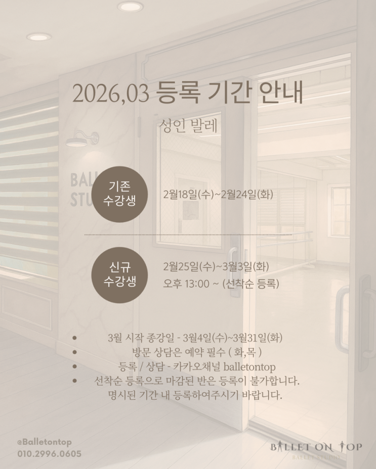 [일산발레학원/발레온탑]3월 등록기간 및 시간표(성인취미반)