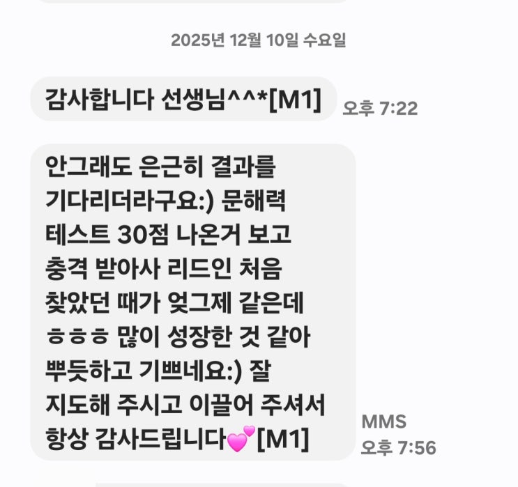 안녕하세요. 리드인 과천문원점입니다:) 리드인에 다니면, 얼마나 실력이 늘까? 이런 궁금증을 가진 부모님들이 많으실 거예요. 오늘은 리드인에서 1년, 어떤 변화가 있는지 살펴보겠습니다. 독서력, 문해력이 쑥~ "집에서 책 읽힌다고 읽혔는데, 레벨테스트 결과가 왜 이럴까요?" "학교에서 실시한 문해력 테스트에서 심각하게 낮은 점수가 나왔어요." "혼자서 책 읽기와 문장 쓰기를 어려워 해요." 이런 이유로 시작한 친구들도 1년만에 실력이 쑥 늘었어요. 집에서는 잘 안 되던데, 왜 리드인에서 읽으니 실력이 늘까? 읽기 실력 향상의 비결은 바로 정독 훈련입니다. 특히 습관을 형성하는 초등 저학년에서 좋....... <img src="https://blogthumb.pstatic.net/MjAyNjAzMTVfMTcz/MDAxNzczNTg1NDk4NTQ3.983GKu8WeY_uMsnMu7RblscKHksd5aknir244OpPcOQg.eOiFxlDGgGjWoyhjvs7RzLnZmS40uQNRuuILXqWbsWcg.JPEG/KakaoTalk_20260315_233440195.jpg?type=s3" />
