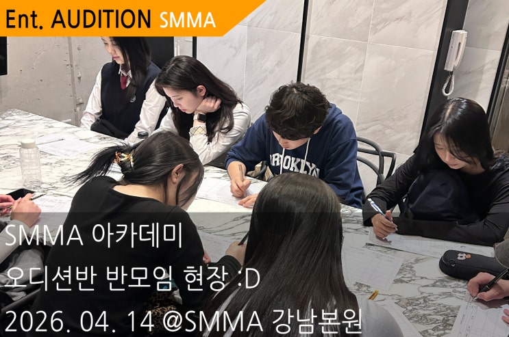안녕하세요. 강남오디션학원 SMMA아카데미입니다. 오디션 준비, 혼자 하다 보면 방향이 흔들릴 때 많으시죠? 열심히 연습은 하고 있지만 내가 제대로 가고 있는지, 어떤 부분을 보완해야 하는지 막막함을 느끼는 경우가 많습니다. 그래서 SMMA아카데미에서는 학생들이 혼자가 아닌 함께 성장할 수 있도록 ✨ 오디션반 반모임을 진행하고 있습니다. 오디션반 반모임, 어떤 시간일까요? 이번 반모임은 같은 꿈을 가진 수강생들이 모여 ✔ 서로의 준비 상황을 공유하고 ✔ 단기 목표를 설정하며 ✔ 서로 응원하고 동기부여를 얻는 시간으로 진행되었습니다. 단순한 모임이 아니라 “지금 내가 무엇을 보완해야 하는지”를 명확히 정리하는....... <img src="https://blogthumb.pstatic.net/MjAyNjA0MjNfMTg3/MDAxNzc2OTE4MjMyOTEx.OoF6Jy1rCCs07Ncmi3WH5xVKDKtVc87q8Y3V9IPYIy8g.x-TaxWNPs6bCJ3xxaZVvsJh7VyAzA-82tZDXO3w_YvUg.JPEG/1.jpg?type=s3" />